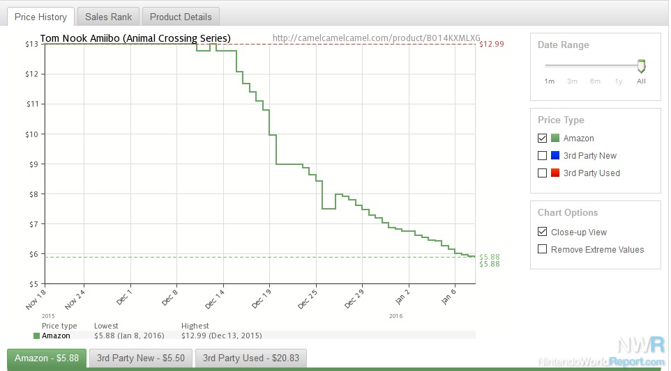 This shouldn’t be a big shock – the game sold about 36,000 copies in its launch month, but it seems that Nintendo has dramatically overestimated the value of Animal Crossing characters in general. Checking Amazon’s price history for the Amiibo, you see something never seen before in Amiibo: Steady reductions of price so they can get rid of the things.