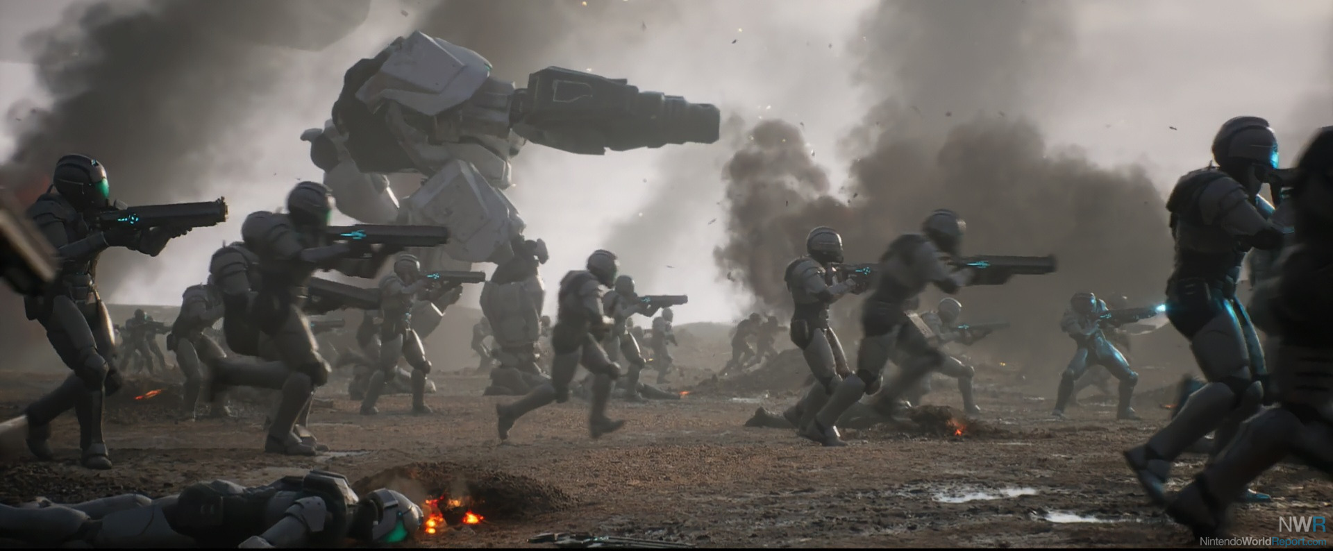 As Sylux and his troops proceed towards the Pirate weapon it then charges up and fires. This weapon seemingly destroys Sylux’s entire squad as he dives in a ditch for safety. The weapon also destroys Federation Mechs.