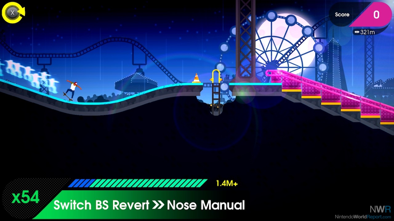 The biggest difference, above all else, is the addition of manual tricks. They’re nothing fancy – you just have to press the joystick left or right while you land. This causes you to coast on one side of your board, but more importantly, keeps your combos going without having to always grind or spin. Long combos are now way easier to pull off, so you can be more strategic about which paths you take or what tricks to execute instead of simply worrying about how high your score is.