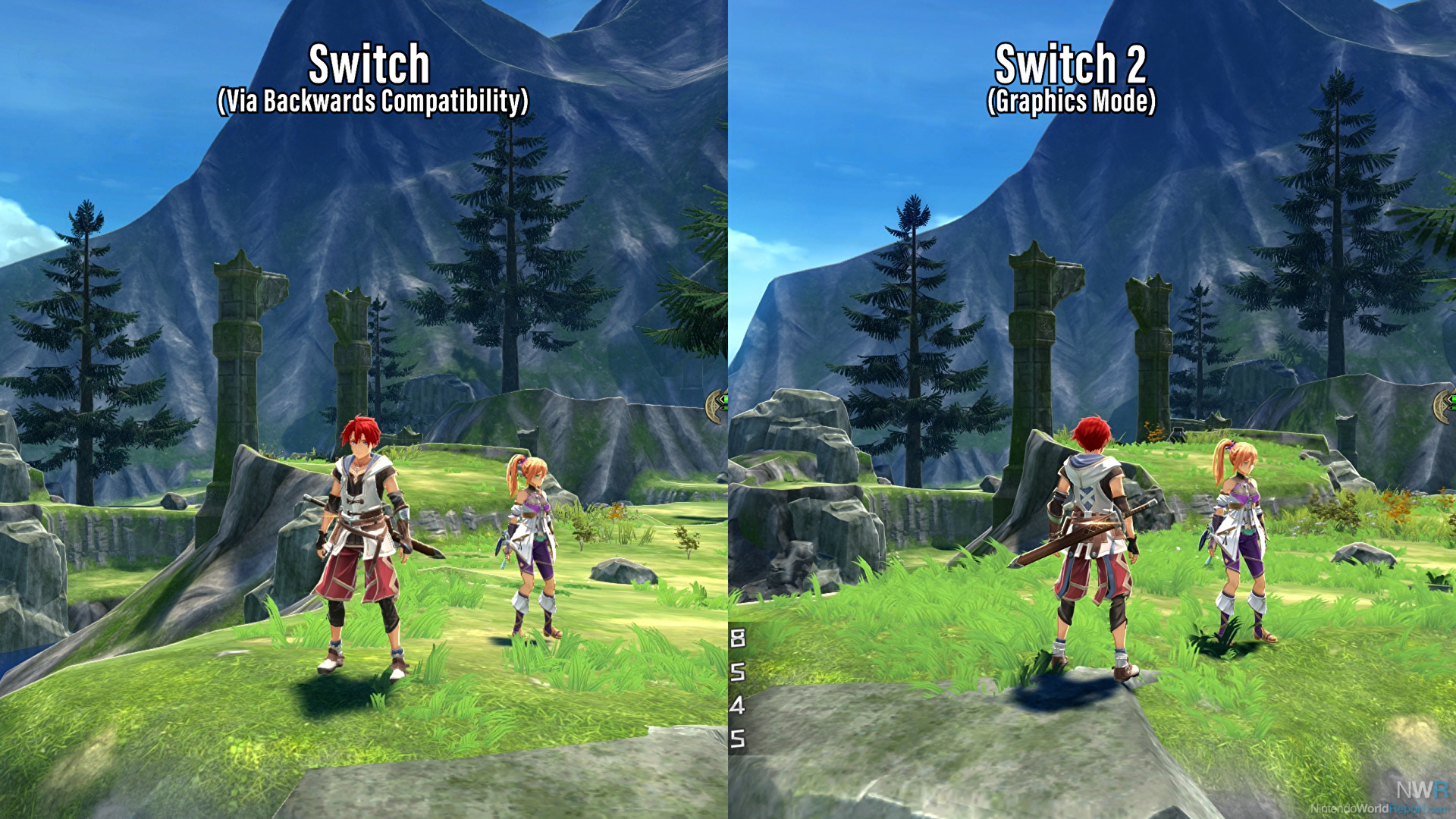 Outside of that new content the big thing you’ll notice immediately if you’re coming from the Switch version is the substantial performance boost on Switch 2. The Switch was a lead platform for the original release so it was always technically solid, but the Switch 2 offers substantial improvements. You get modes for both 60 frames-per-second and 120 frames-per-second as compared to the original’s 30 frames-per-second. On the original Switch Ys X’s dynamic resolution generally landed around 720p. Out of curiosity I decided to capture my comparison footage of the original Switch version on a Switch 2 just to see how different it would actually be from the Switch 2 version. Backwards compatibility is able to brute force that 720p up to a full 1080p which was a pleasant surprise. It's actually the same underlying resolution as the full Switch 2 version. The difference here is that the Switch 2 version benefits from proper anti-aliasing improving the image quality significantly. If you’re coming from having only played this version on an actual original Switch then the difference will be even more stark than these comparisons.