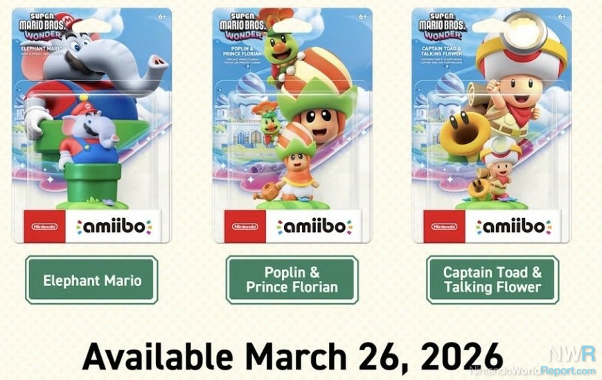 A Nintendo Today posting has revealed the release date for Super Mario Wonder's Switch 2 upgrade and the "Welcome to Bellabel Park" expansion: the set will launch on March 26. Accompanying the release will be three new entries in the Mario line of Amiibo: Elephant Mario, Prince Florian and Poplin, and Capt. Toad + Talking Flower. All of these will launch a week before the premiere of the Super Mario Galaxy Movie (April 3).