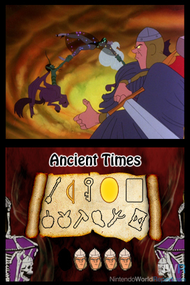 DSiWare titles reach a total of four. First we go back to rescuing girls in Digital Leisure Inc.'s Dragon's Lair II: Time Warp. The laserdisc video game from the year 1991 has been ported to the DSi, complete with Don Bluth's animation. It is a mostly non-interactive short film, with movement and firing required at certain times in order to advance. This comes in at 800 Points ($8).